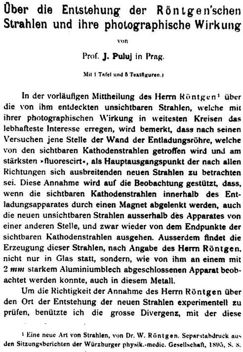 | Прилад для визначення значення механічного еквівалента теплоти Пулюя. | Креслення лампи Пулюя. | Стаття Пулюя "Про виникнення рентгенівського випромінювання його фотографічний ефект." |